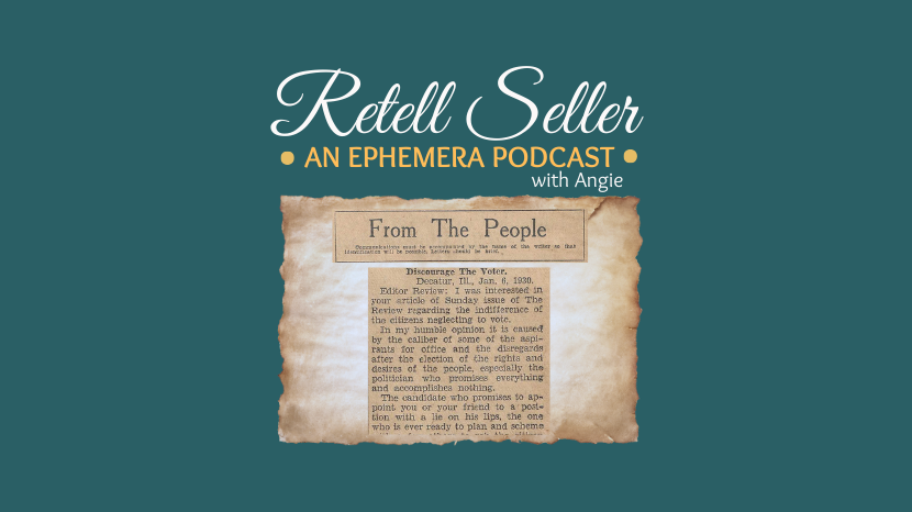 Hey everybody. Welcome to Retell Seller, an ephemera podcast where I uncover forgotten stories and the ephemera people leave behind. I’m Angie a reseller of 10 years, and I’ll share one of those snippets with you. Let’s see what today’s find has to say.